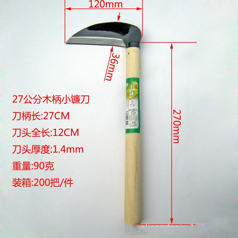 27cm Sharp Grass Sickle Lightweight steel machete knife wooden handle Hand Sickle Hand Scythe for Weeding Garden pruning tools