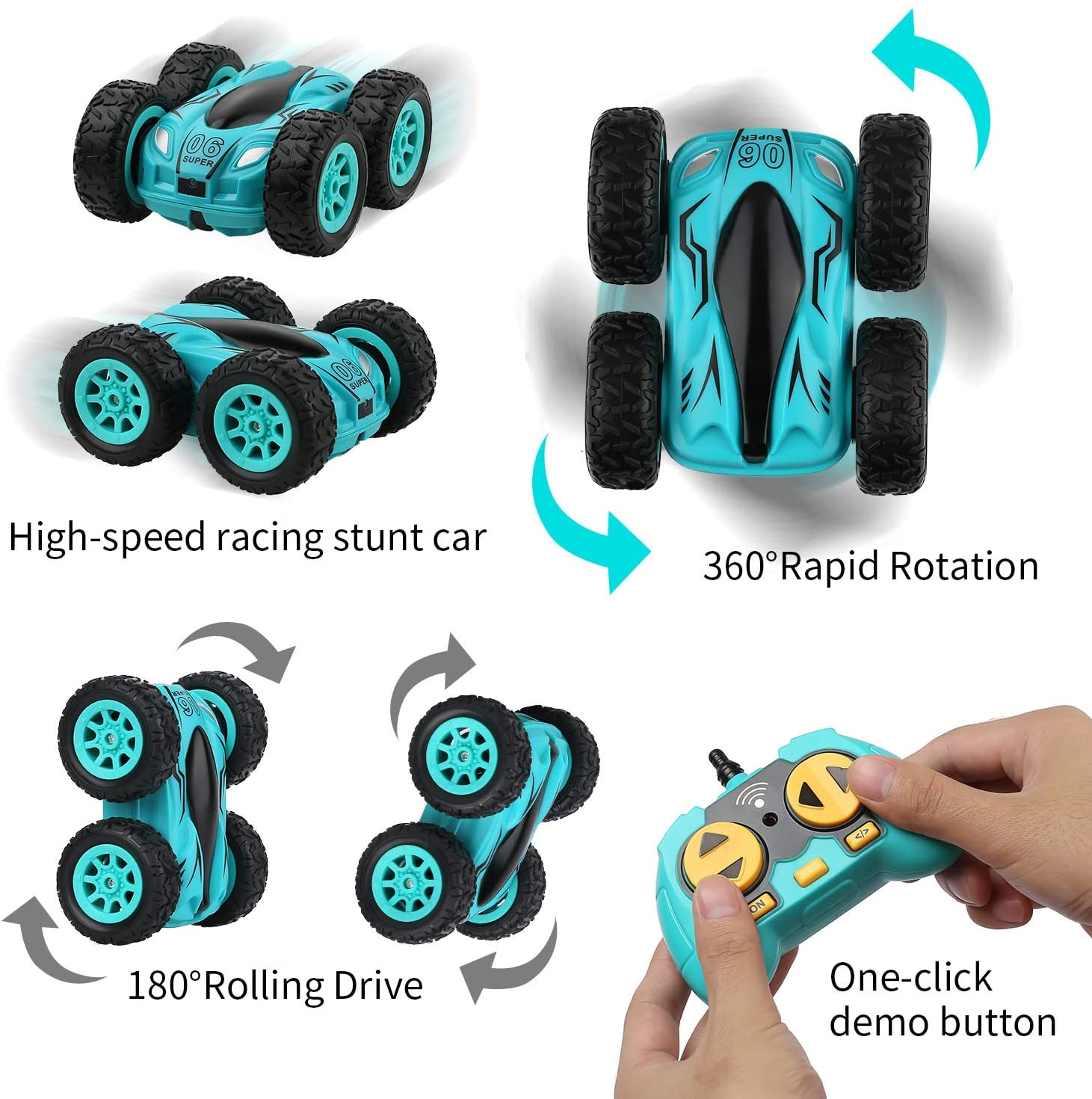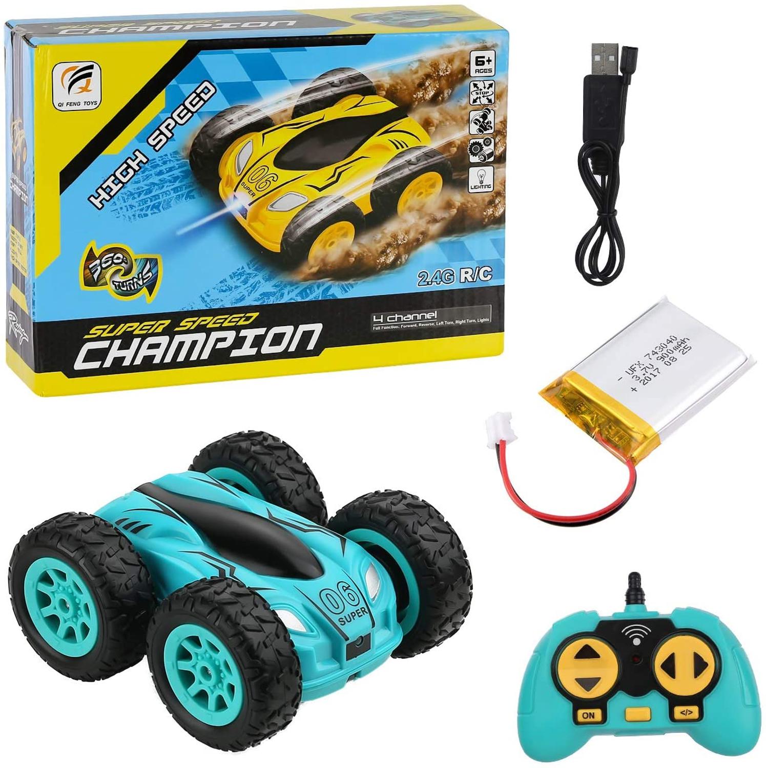 Description: 1. 360° flip remote control car: 2.4G remote control, high-speed climbing, non-toxic ABS plastic material, drop resistance and wear resistance, suitable for boys and girls; durable design makes it our most rugged remote control car for children 2. 2.4GHZ anti-interference control: high-speed remote control toy car has a 2.4GHz non-interference control frequency, which enables multiple rc stunt cars to compete at the same time and place at the same time, and can be remotely controlled from a distance of about 40 to 60meters 3. High-quality materials for MINI double-sided off-road RC racing car: This toy car is equipped with four rubber tires, and the uneven texture design makes it have a stronger surface grip. You can easily drive and perform skills on flat and uneven terrain, such as: concrete floors, beaches, park grass 4. One-button demonstration button: press the button on the remote control, you can see the colorful lights built in this remote-controlled car, and you can also realize one-button autopilot mode 5. Ideal gift: This remote control car for child 4-7 toy is the perfect gift. Rotation and flip function, lighting and speed make it ideal Packing Include: 1 x RC Stunt Car 1 x Remote Controller 1 x Charging Cable 1 x Original Box Size:3.74*3.34*1.77 inch/9.6*8.5*4.5cm Remote Distance:40-50M