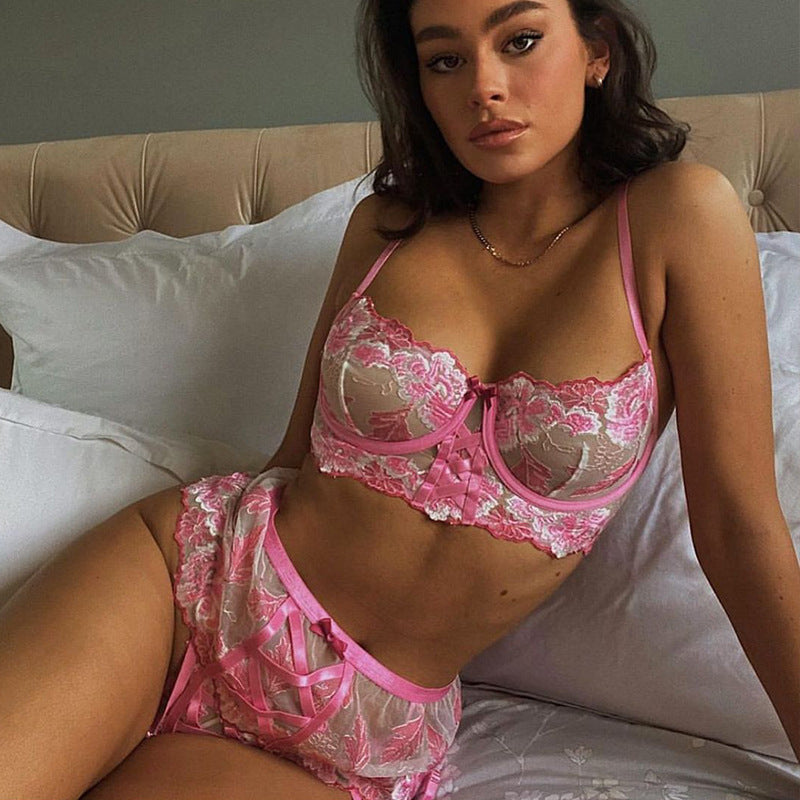 3 Pieces Set New Sensuall Lingerie Embroidery Exotic Costumes Lace Bras Suit With Garters Straps Bondage Erotic Underwear Set