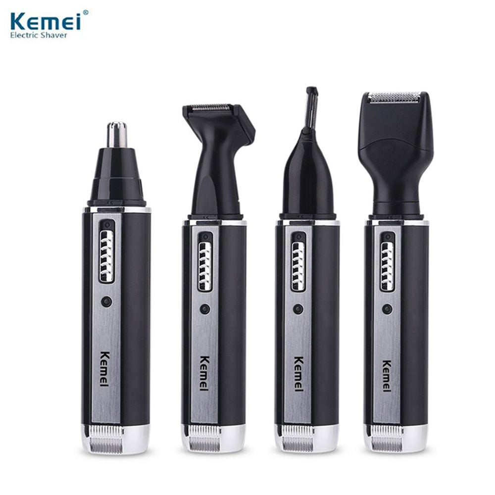 Kemei KM - 6630 4 in 1 trimmer set can use for beads, eyebrow, hair and nose hair. It keeps your appearance tidy and clean every day.