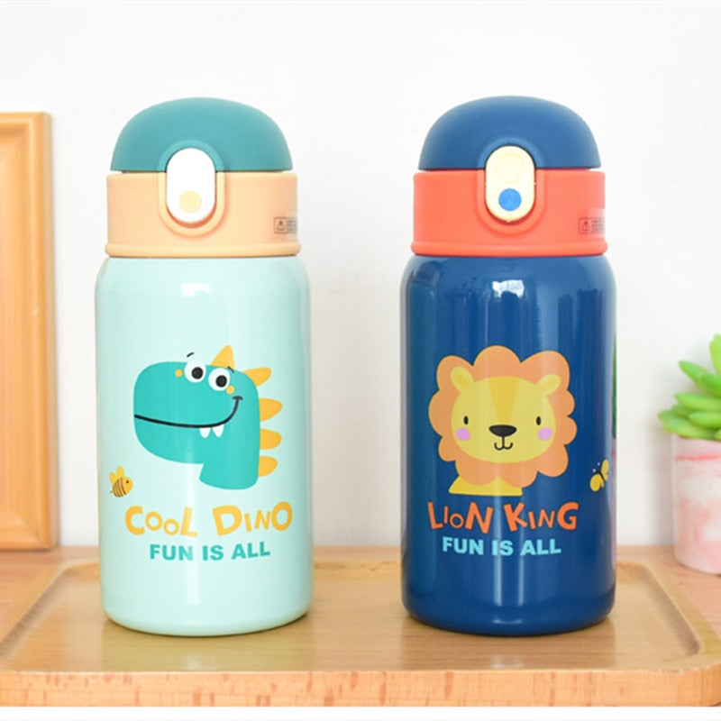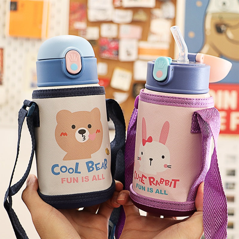 400ml Kids Stainless Steel Straw Thermos Mug With Case Cartoon Leak-Proof Vacuum Flask Children Thermal Water Bottle Thermocup