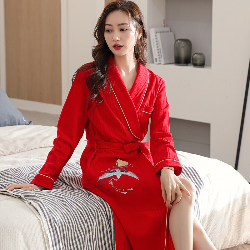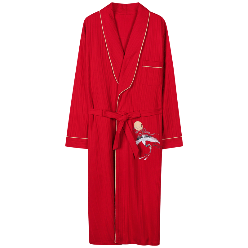 4XL Autumn Bathrobe Couples Cotton Kimono Wedding Festive Red Robes For Male Soild Long Bath Robe Bride Robe Dressing Gown