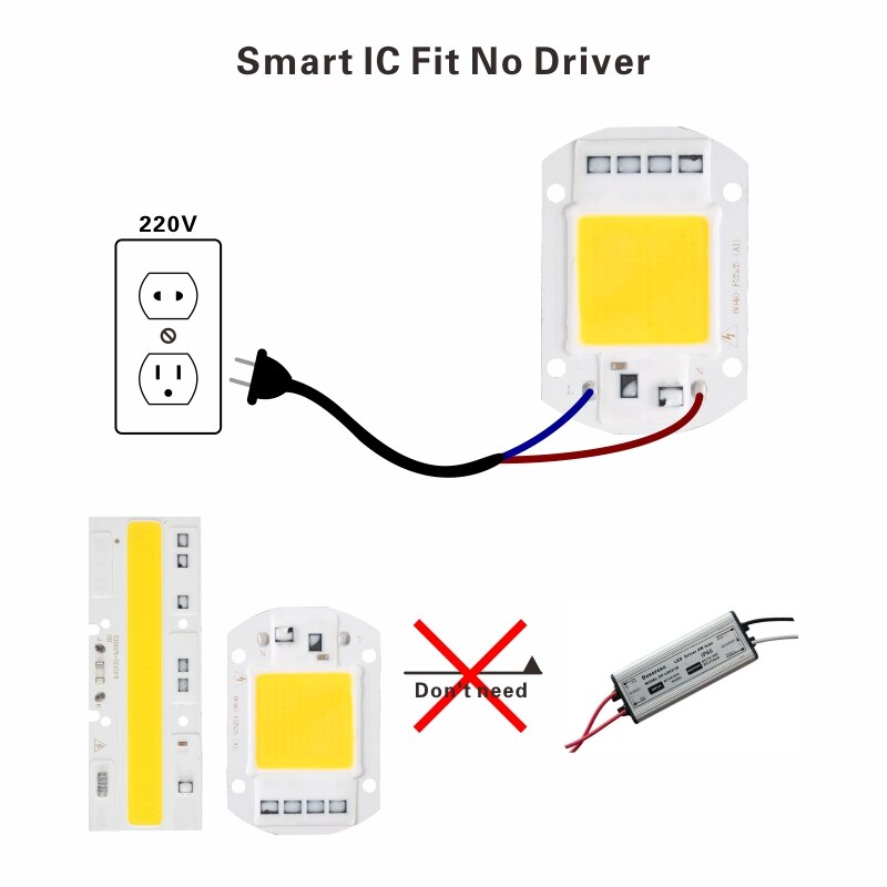 LARZI COB LED Lamp Chip 110V 220V High Power 10W 20W 30W 50W 70W 100W 120W 150W Input Smart IC No Driver LED Bulb Flood Light Spotlight